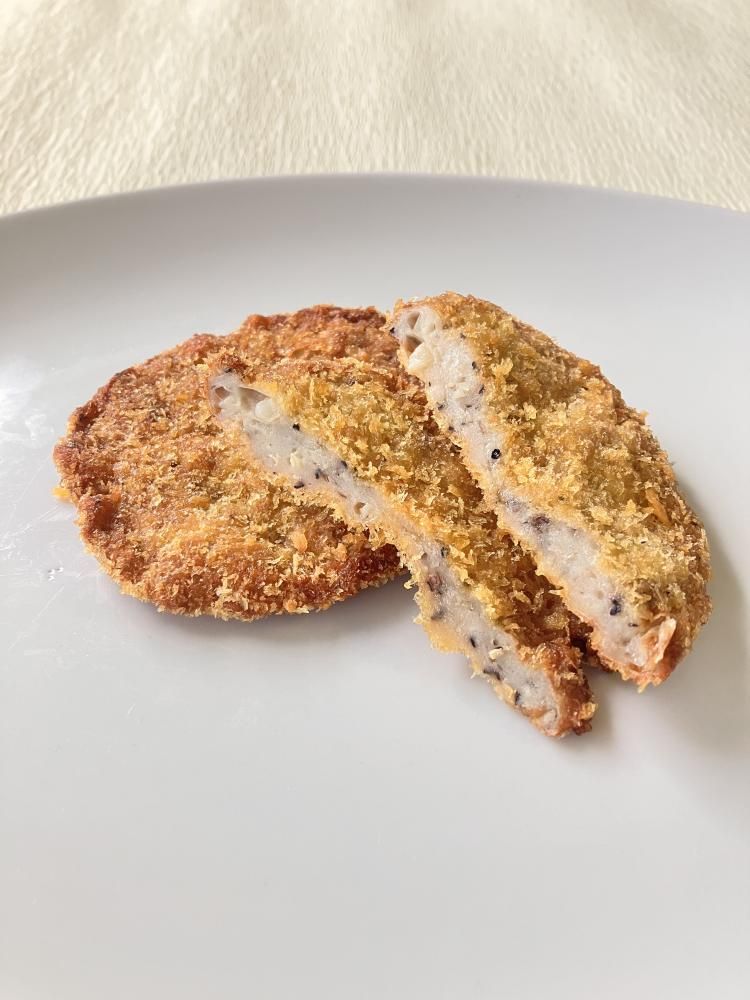 新感覚フライ「かまカツ」登場!魚のすり身に玉ねぎと香川県産のニンニクを練りこみました。