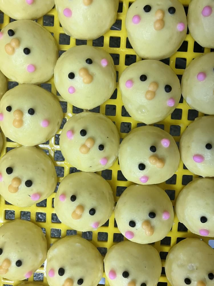 クマとブタのかまぼこにはチーズ、ハートのかまぼこにはウズラの卵が入っています。